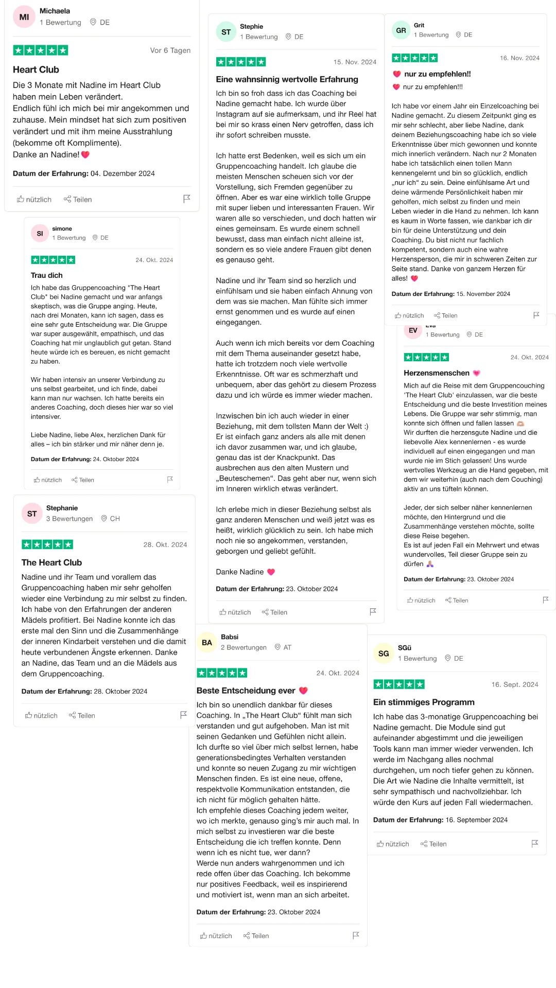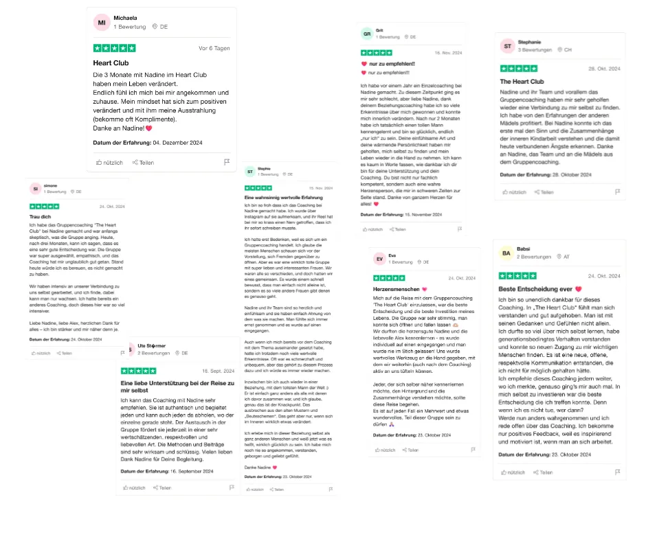 Nadine Kleifges ist Deutschlands bekannteste und größte Beziehungsmentorin für tolle Single - Frauen. Seit gut 10 Jahren arbeitet sie vor allem Online und hat bereits 310 Menschen vom teilweise Dauersingle bis hin zu einer gesunden schönen Beziehung begleitet.